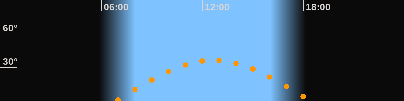 | Höchster Stand (Kulmination) | 12:39 Uhr (h = 36,5°) |