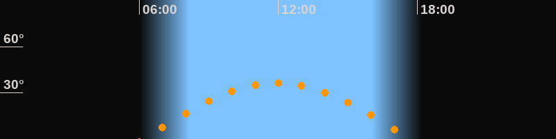 | Höchster Stand (Kulmination) | 11:55 Uhr (h = 36,5°) |