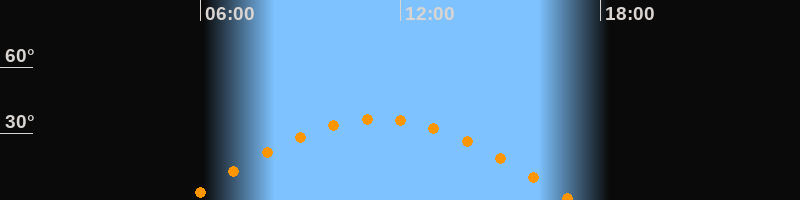 | Höchster Stand (Kulmination) | 11:21 Uhr (h = 36,5°) |