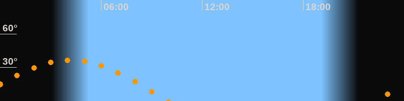 | Höchster Stand (Kulmination) | 04:09 Uhr (h = 36,5°) |