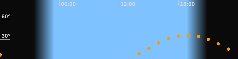 Höchster Stand (Kulmination)18:54 Uhr (h = 36,5°)