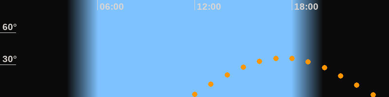 | Höchster Stand (Kulmination) | 17:28 Uhr (h = 36,5°) |