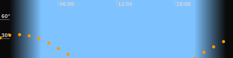 | Aufgang | 19:59 Uhr im Osten (αAz = 93,7°) |