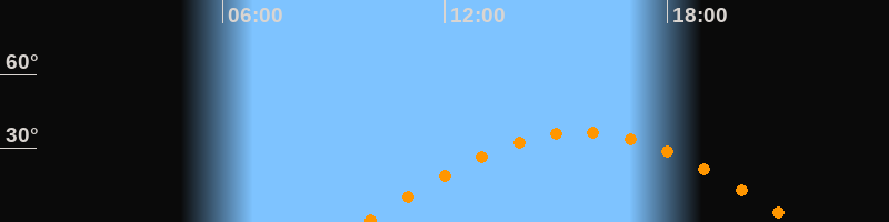 | Höchster Stand (Kulmination) | 15:39 Uhr (h = 36,5°) |