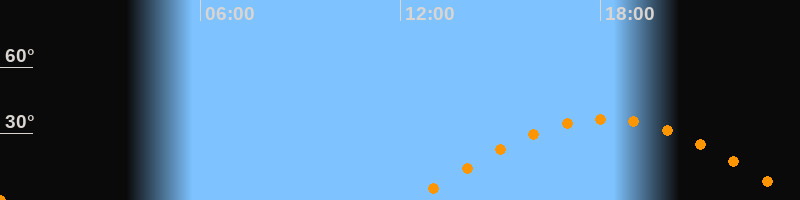 | Höchster Stand (Kulmination) | 18:10 Uhr (h = 36,5°) |
