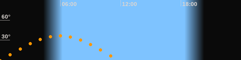 | Höchster Stand (Kulmination) | 05:55 Uhr (h = 36,5°) |