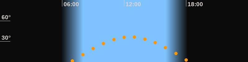 | Höchster Stand (Kulmination) | 12:35 Uhr (h = 36,5°) |