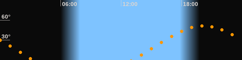 | Aufgang | 13:06 Uhr im Osten (αAz = 69,8°) |