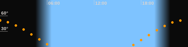 | Aufgang | 16:28 Uhr im Osten (αAz = 69,8°) |