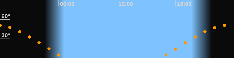 | Aufgang | 16:24 Uhr im Osten (αAz = 69,8°) |