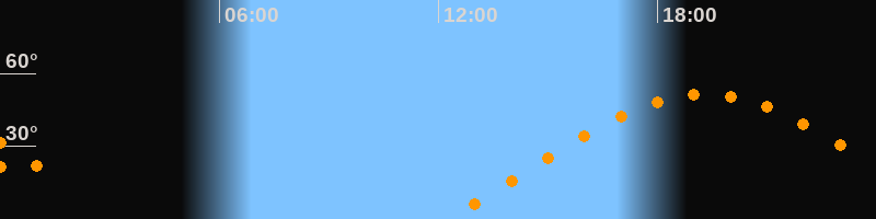 | Aufgang | 12:14 Uhr im Osten (αAz = 69,8°) |
