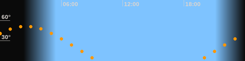 | Aufgang | 19:24 Uhr im Osten (αAz = 69,8°) |