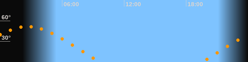 | Aufgang | 19:30 Uhr im Osten (αAz = 69,8°) |