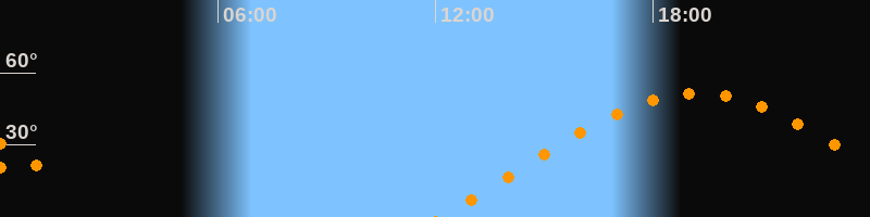 | Aufgang | 12:09 Uhr im Osten (αAz = 69,8°) |