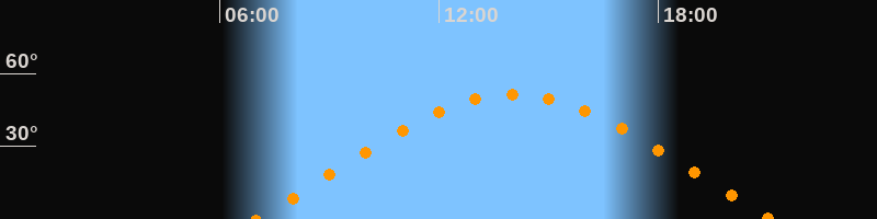 | Aufgang | 06:59 Uhr im Osten (αAz = 69,8°) |