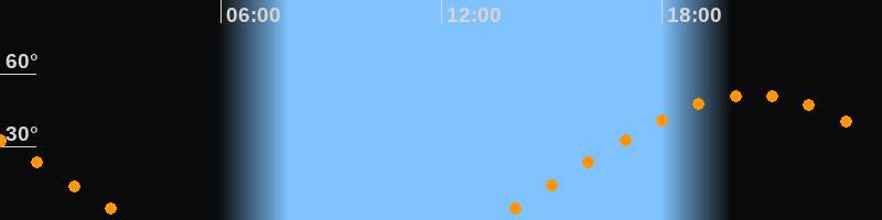 | Aufgang | 13:23 Uhr im Osten (αAz = 69,8°) |