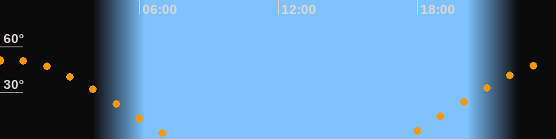 | Aufgang | 17:20 Uhr im Osten (αAz = 69,8°) |