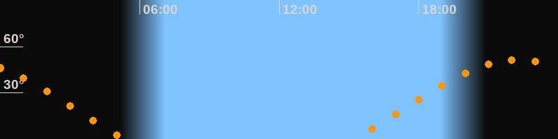 | Aufgang | 15:11 Uhr im Osten (αAz = 69,8°) |