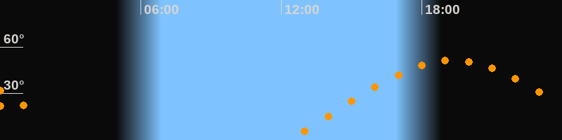 | Aufgang | 12:16 Uhr im Osten (αAz = 69,8°) |