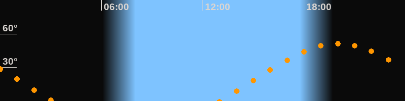 | Aufgang | 12:57 Uhr im Osten (αAz = 69,8°) |