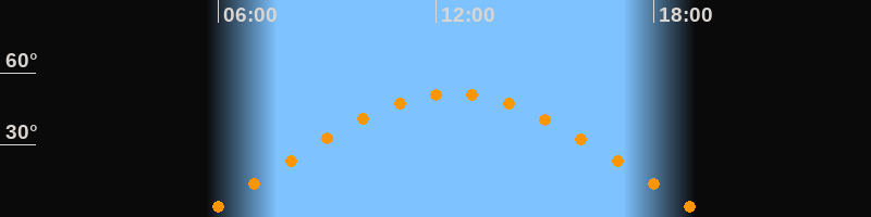 | Aufgang | 05:25 Uhr im Osten (αAz = 69,8°) |