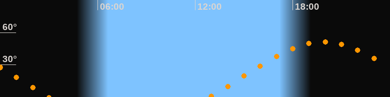 | Aufgang | 12:50 Uhr im Osten (αAz = 69,8°) |