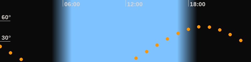 | Aufgang | 12:19 Uhr im Osten (αAz = 69,8°) |