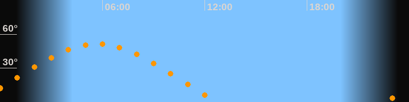 | Aufgang | 22:33 Uhr im Osten (αAz = 69,8°) |
