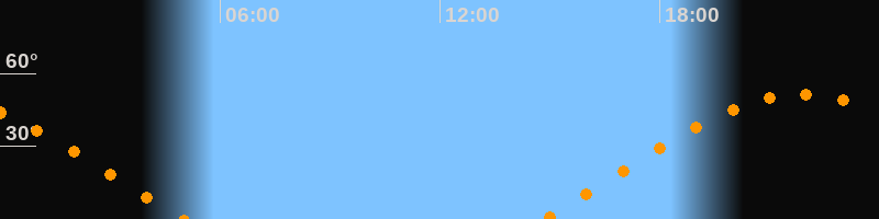 | Untergang | 05:01 Uhr im Westen (αAz = 290,2°) |