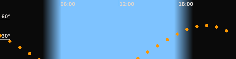 | Aufgang | 13:46 Uhr im Osten (αAz = 69,8°) |