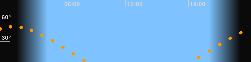 | Aufgang | 18:11 Uhr im Osten (αAz = 69,8°) |