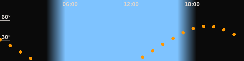 | Aufgang | 13:18 Uhr im Osten (αAz = 69,8°) |