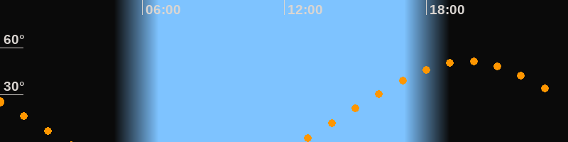 | Aufgang | 12:38 Uhr im Osten (αAz = 69,8°) |