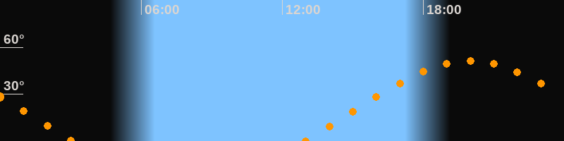 | Aufgang | 12:55 Uhr im Osten (αAz = 69,8°) |