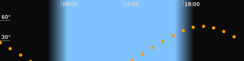| Aufgang | 12:49 Uhr im Osten (αAz = 69,8°) |