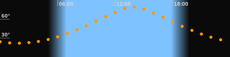 | Höchster Stand (Kulmination) | 13:55 Uhr (h = 79,4°) |