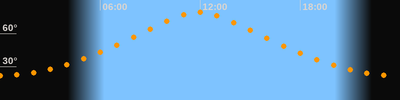 | Höchster Stand (Kulmination) | 11:55 Uhr (h = 79,4°) |