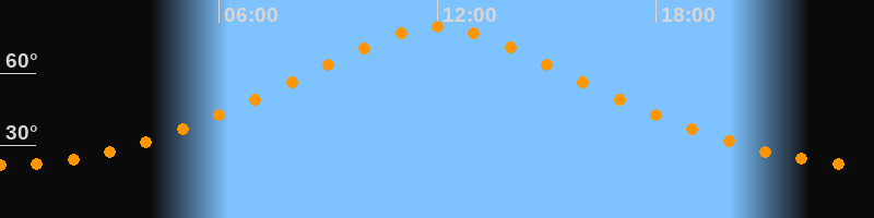 | Höchster Stand (Kulmination) | 12:00 Uhr (h = 79,4°) |