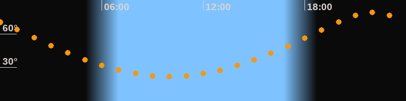 | Höchster Stand (Kulmination) | 21:59 Uhr (h = 79,4°) |