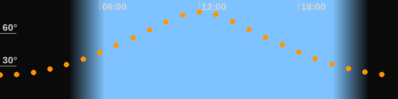 | Höchster Stand (Kulmination) | 12:02 Uhr (h = 79,4°) |