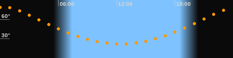 | Höchster Stand (Kulmination) | 00:22 Uhr (h = 79,4°) |