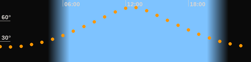 | Höchster Stand (Kulmination) | 12:38 Uhr (h = 79,4°) |