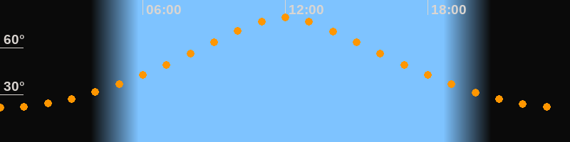 | Höchster Stand (Kulmination) | 11:59 Uhr (h = 79,4°) |