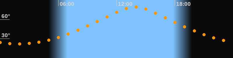 | Höchster Stand (Kulmination) | 13:54 Uhr (h = 79,4°) |
