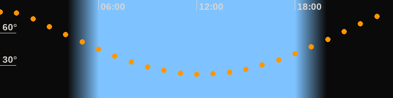 | Höchster Stand (Kulmination) | 00:16 Uhr (h = 79,4°) |