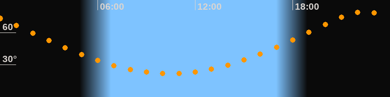 | Höchster Stand (Kulmination) | 22:24 Uhr (h = 79,4°) |