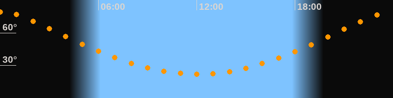 | Höchster Stand (Kulmination) | 23:59 Uhr (h = 79,4°) |