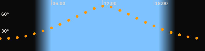 | Höchster Stand (Kulmination) | 12:16 Uhr (h = 79,4°) |