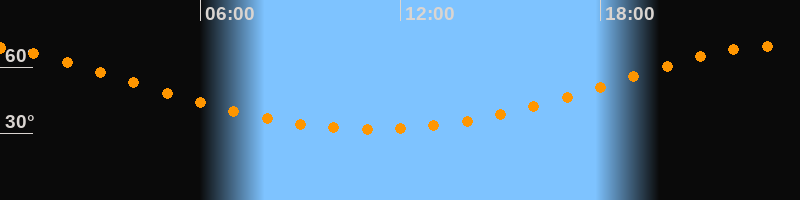 | Höchster Stand (Kulmination) | 23:11 Uhr (h = 69,3°) |