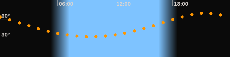 | Höchster Stand (Kulmination) | 21:25 Uhr (h = 69,3°) |